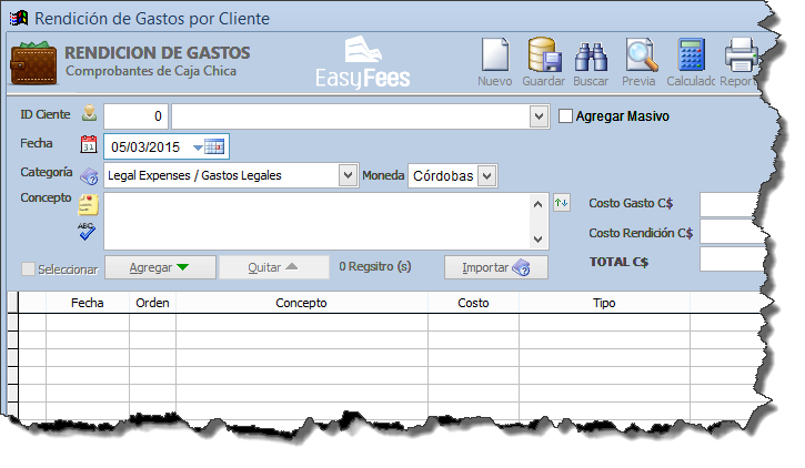 Rendición de gastos por clientes agrupados por tipos, así como la impresión de la misma por gestor.