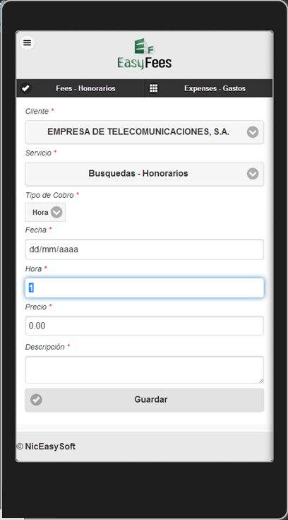 Facturación de Honorarios en: Flat Fees, Horas, Paquetes, Retainer y Casos.