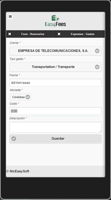 para apoyar el control de la Facturacion de Honorarios y Control de Gastos por servicios profesionales,