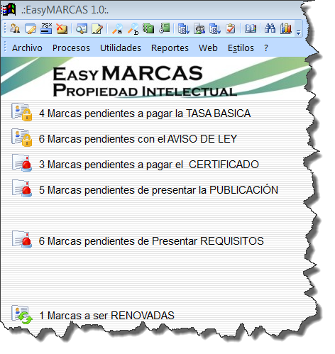 Este software permite llevar el control de las Marcas por estatus, búsquedas por números de Expedientes, Registros, Reportes y más.